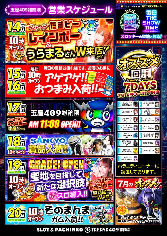 9のつく日+GRADEUP OPEN+たまピーレインボー来店+望月咲来店