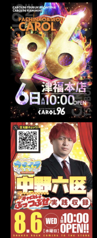 前回7/16頂チャンネル(sasuke )来店の時は台平均約+340枚と非常に優秀🔥今回も全体差枚に期待したいぞ!