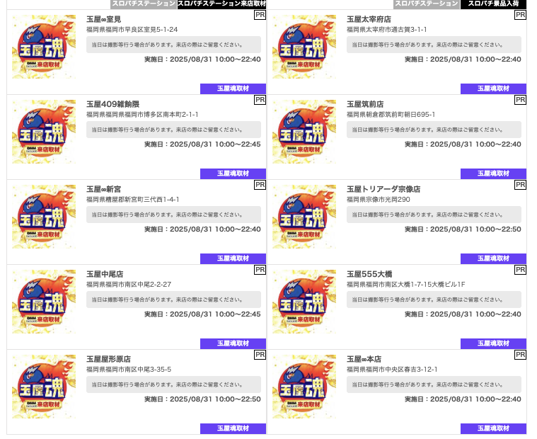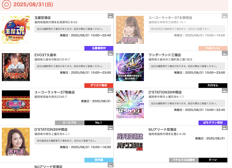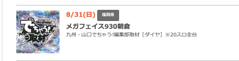 8月31日(日)明日の福岡激アツホール【明日はDステ筑紫野で爆撮が初開催?!】