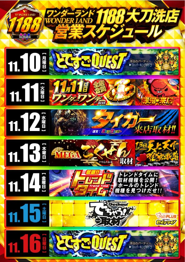 11月11日(火)明日の福岡激アツホール【明日はゾロ目なのでアツい店舗だらけだ!激アツ厳選🔥】