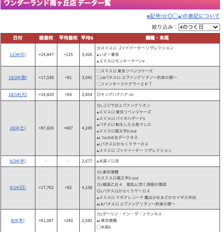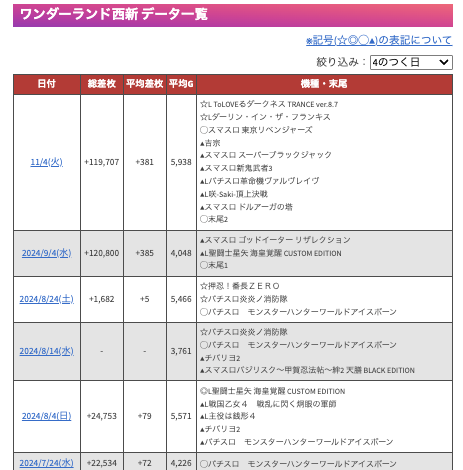 直近は全体差枚が残ってないことも多いが、設定のありそうな箇所はしっかりありそうだな🤔