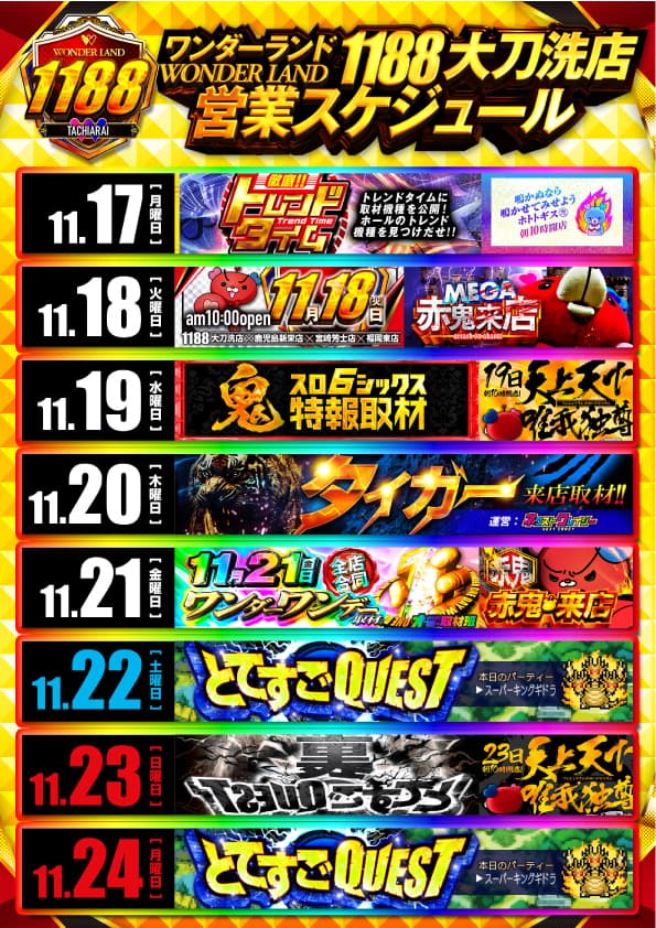11月19日(水)明日の福岡激アツホール!!【明日は朝倉にじゅりそん来店だ🔥】