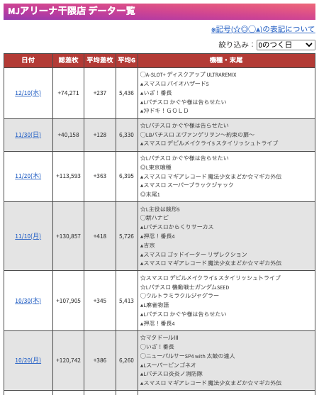 直近の0のつく日はマイナス差枚になっている日が見当たらないぞ🔥明日はMJ系列で舞えるだろう!