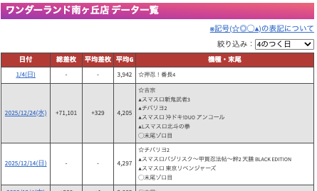 直近マイナス差枚が目立ってはいるが、ベースの高そうな箇所もあるので期待のしすぎは厳禁だがチャンスはありそうだな🤔