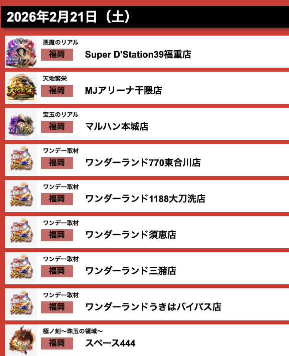 2月21日(土)明日の福岡のアツいホール【明日は大刀洗が激アツ🔥】