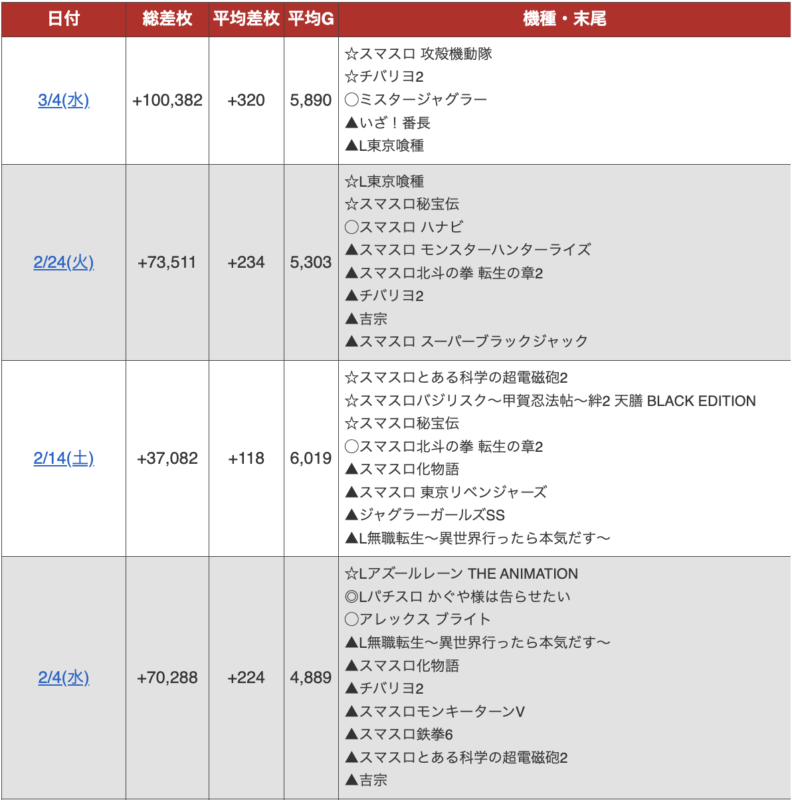 最近の4のつく日はベース高めな印象、ジャグ系にもチャンスがありそう🤔