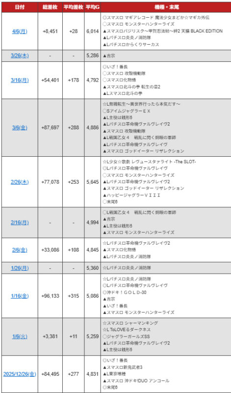 特日はしっかり回転数ついている箇所も多く、明日もそれなりに期待できそうだ🔥